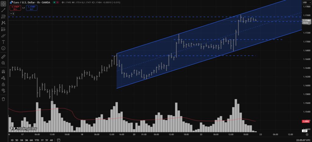 So the market’s been sipping bullish juice ever since Friday, July 18th, 2025. That day, it flexed with a high of 1.16723, and ever since, it’s been climbing like it just discovered what “gains” mean. Let’s walk through the glow-up, shall we?