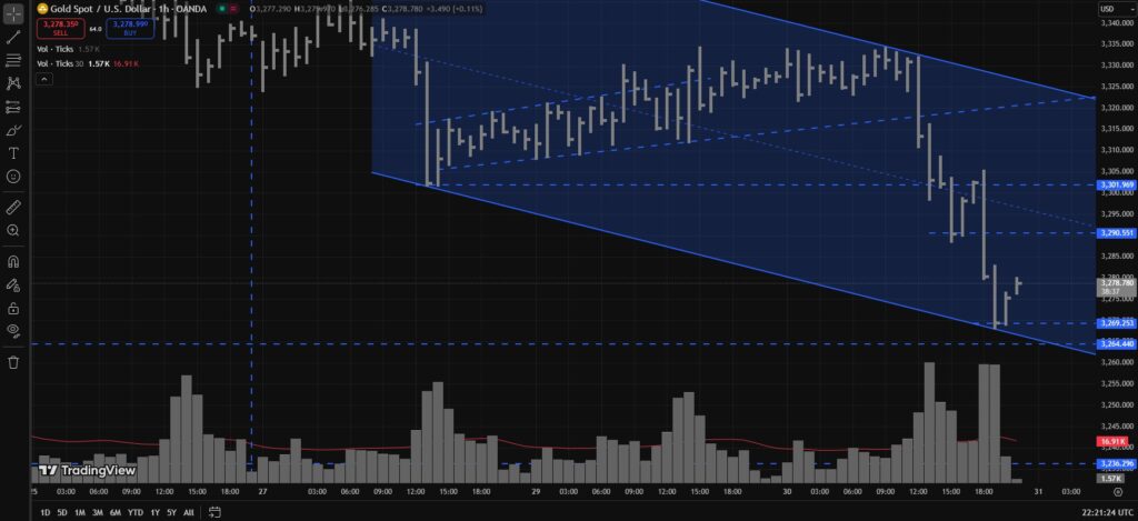 Remember our key resistance at 3331? The market made some fakeouts, slightly poking above it to hit 3334, but failed to break out convincingly. The daily candle closed at 3326, and since the breakout wasn’t real, our previous bearish analysis remained valid even into July 30.